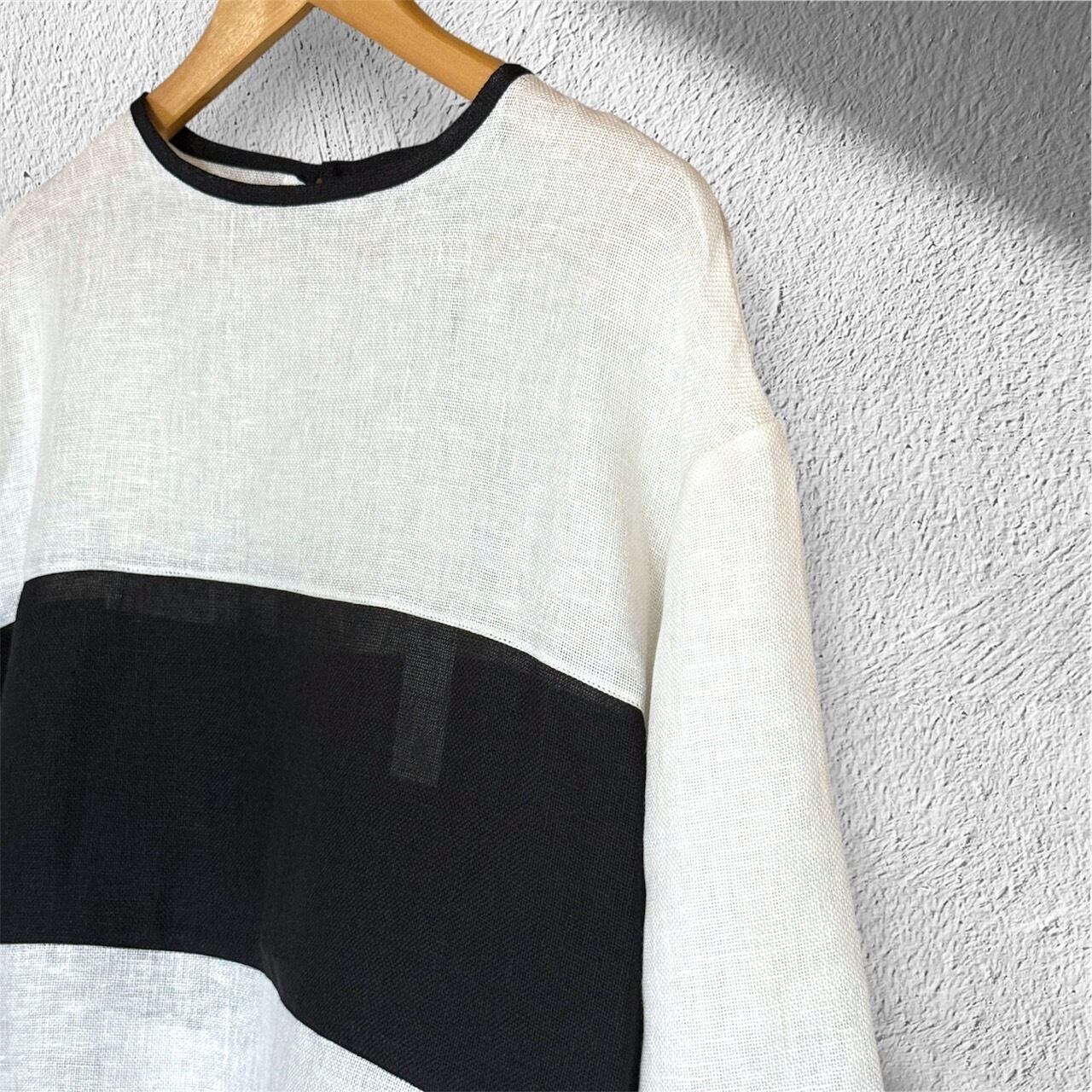 MANON スウィッチボーダーメッシュリネンプルオーバー