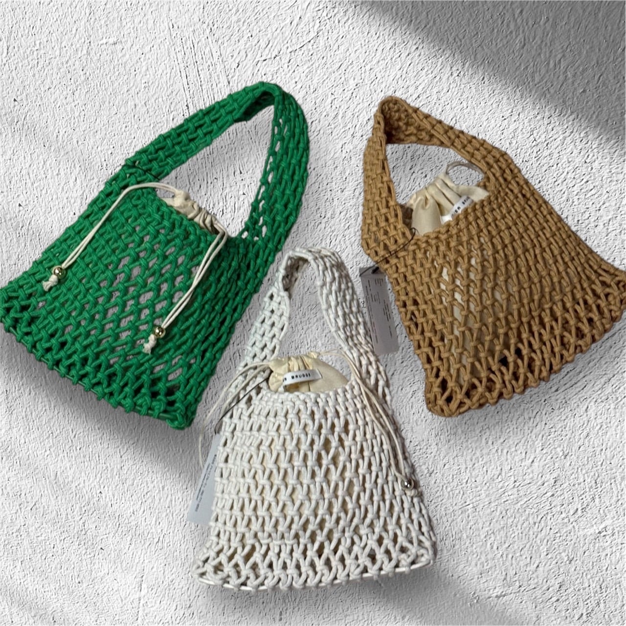atelier brugge マクラメミニバッグは、洗練されたデザインと実用性を兼ね備えた素敵なアイテムです。柔らかなコットン素材を使用しており、軽やかさと通気性が抜群で、デイリーユースにぴったりです!マクラメ編みが施された独特のテクスチャーが魅力的で、シンプルなコーディネートに新しい風を吹き込みます。お出かけやデート、カジュアルな集まりなど、さまざまなシーンで活躍すること間違いなしです。ぜひ、あなたのスタイルに合わせたコーディネートを楽しんでみてくださいね!