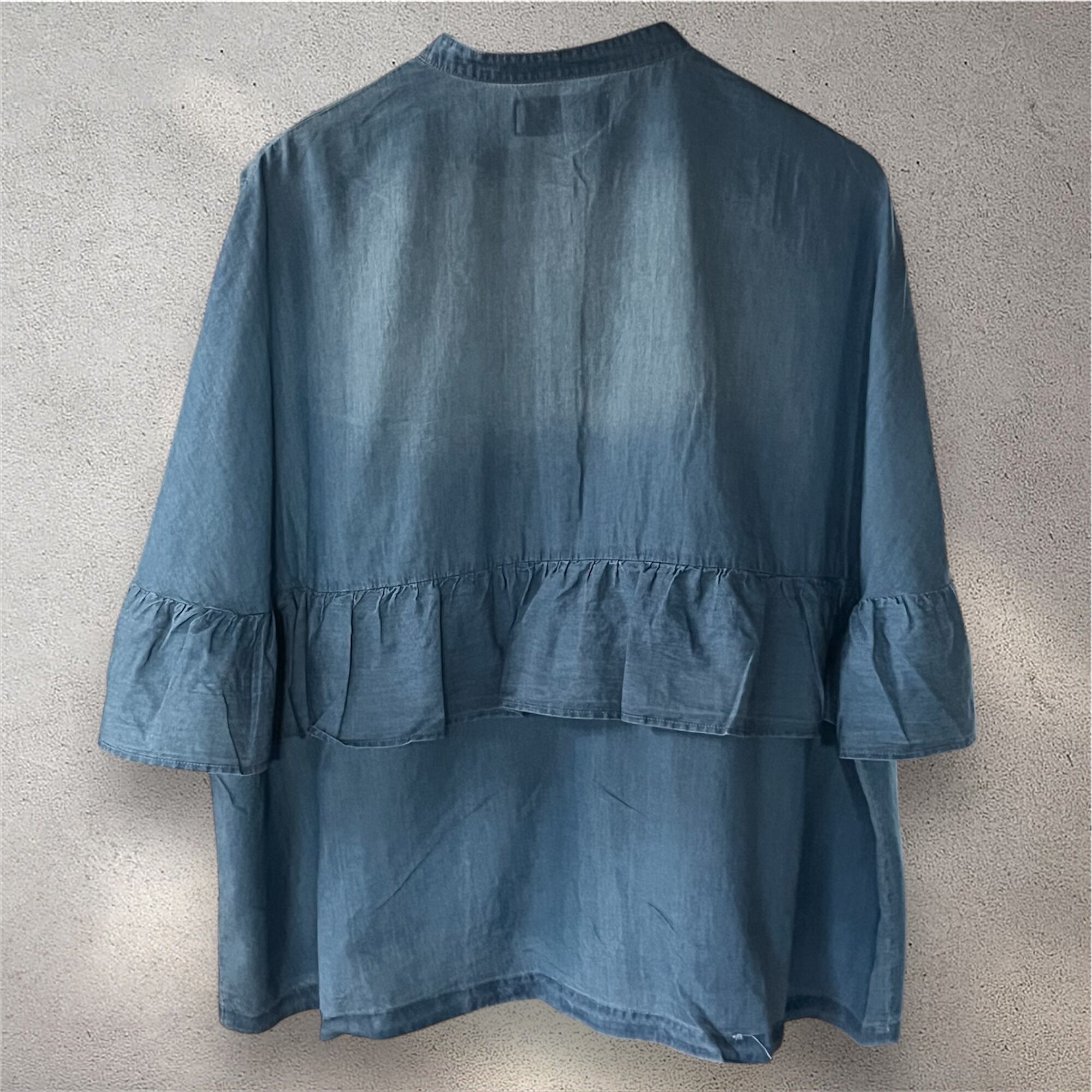 CYAN シアーデニムフリルシャツ