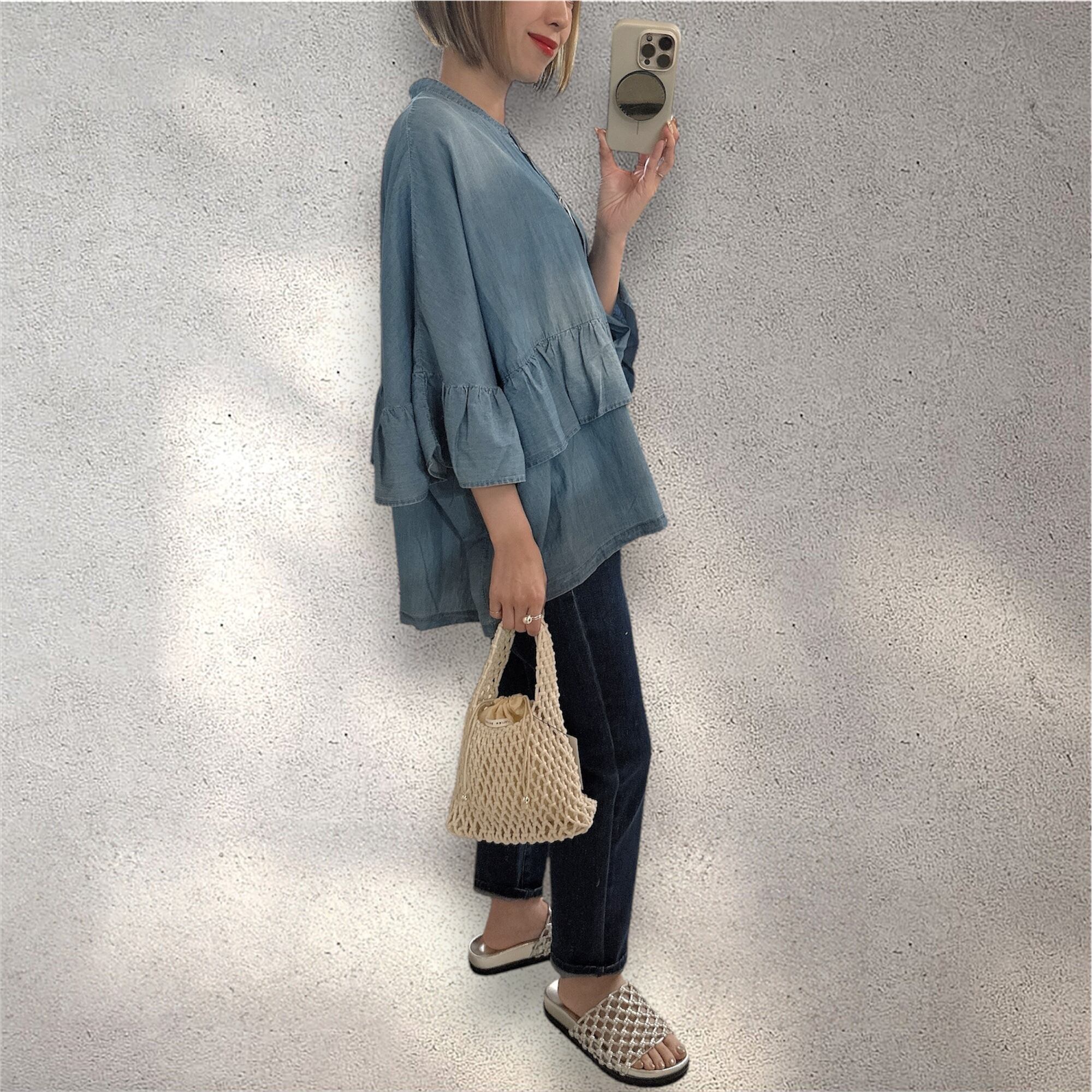 CYAN シアーデニムフリルシャツは、女性らしさとカジュアルさを兼ね備えた魅力的なアイテムです。透け感のあるデニム素材を使用しており、軽やかで涼しげな着心地を実現しています!フリルデザインが動きに合わせて優雅に揺れ、日常のコーディネートに華やかさをプラスします。デニムパンツやスカートと合わせれば、シンプルながらもおしゃれなスタイルが完成します。ぜひ、あなたのコーディネートに取り入れてみてくださいね!