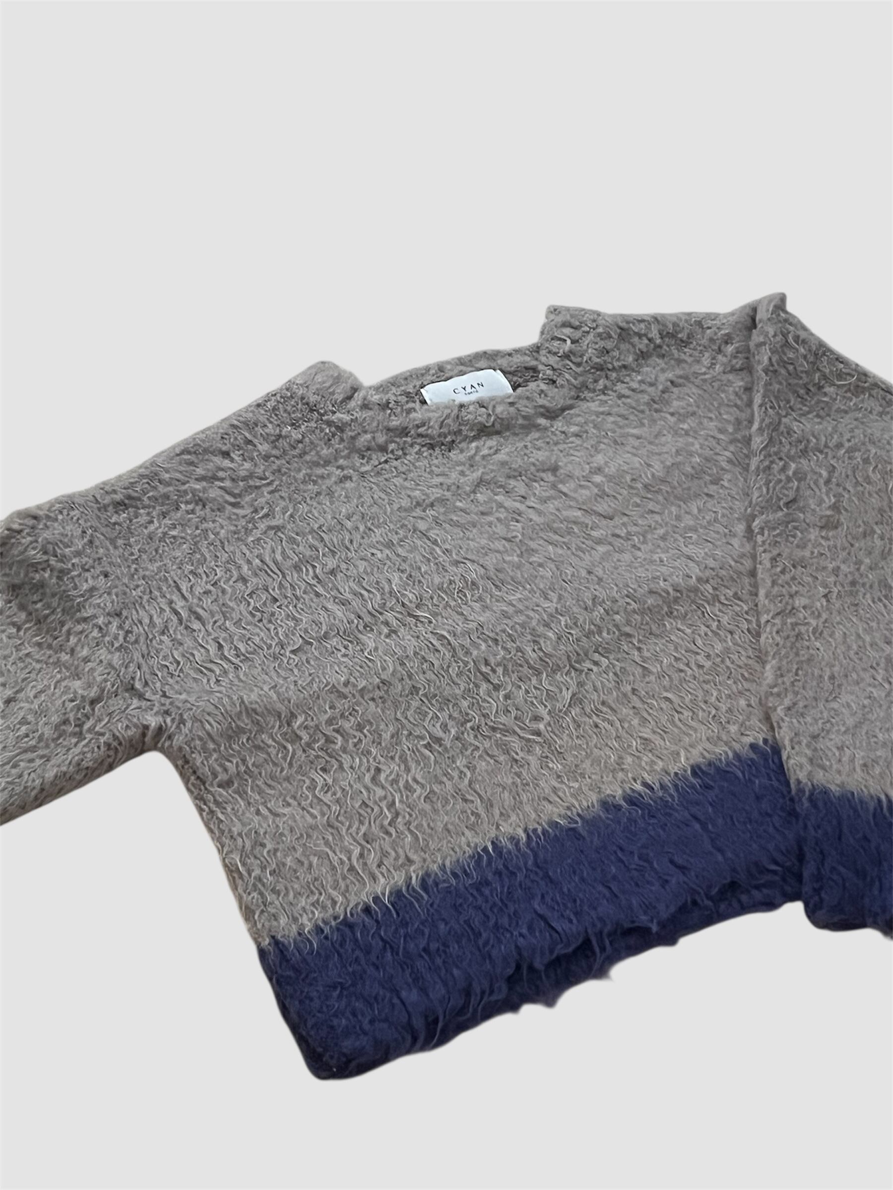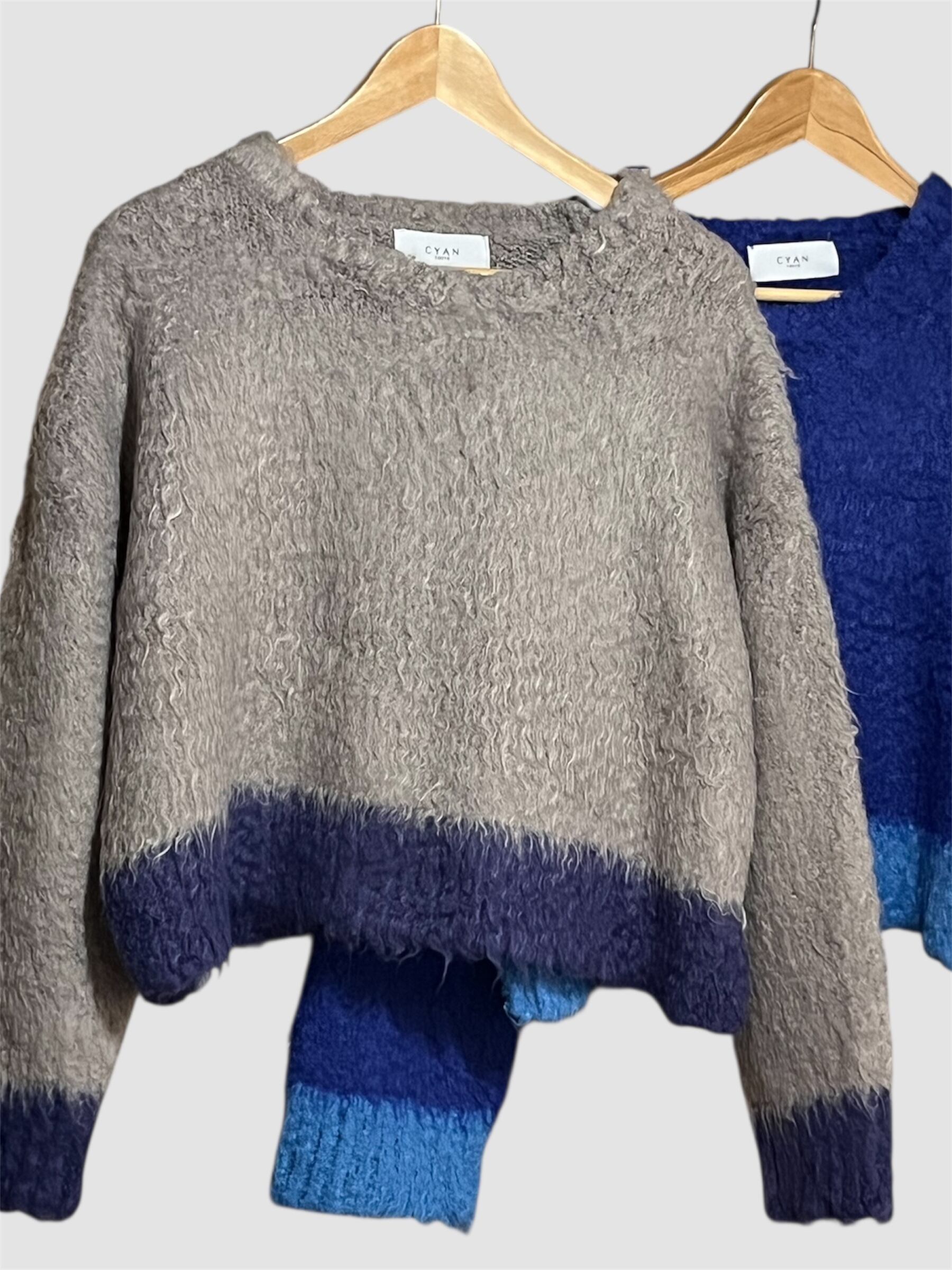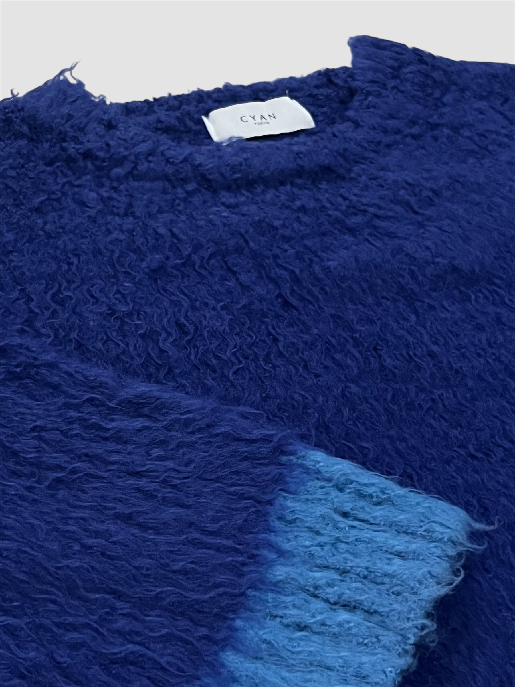 CYAN配色カーリーショートニット
