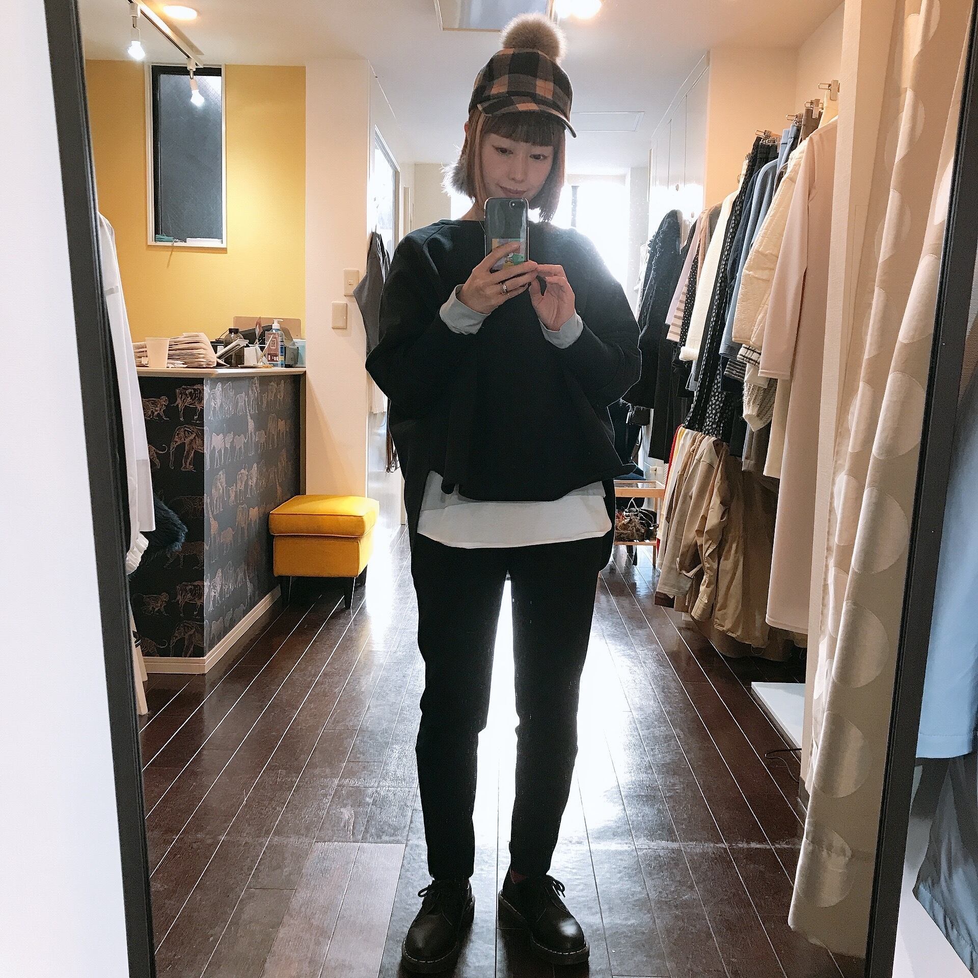 スウェットは大人が着るとカジュアルになり過ぎたりもしますが、裾が前後差のあるデザインでシャツをレイヤードしたり、Tシャツなどをインしたりもおすすめです