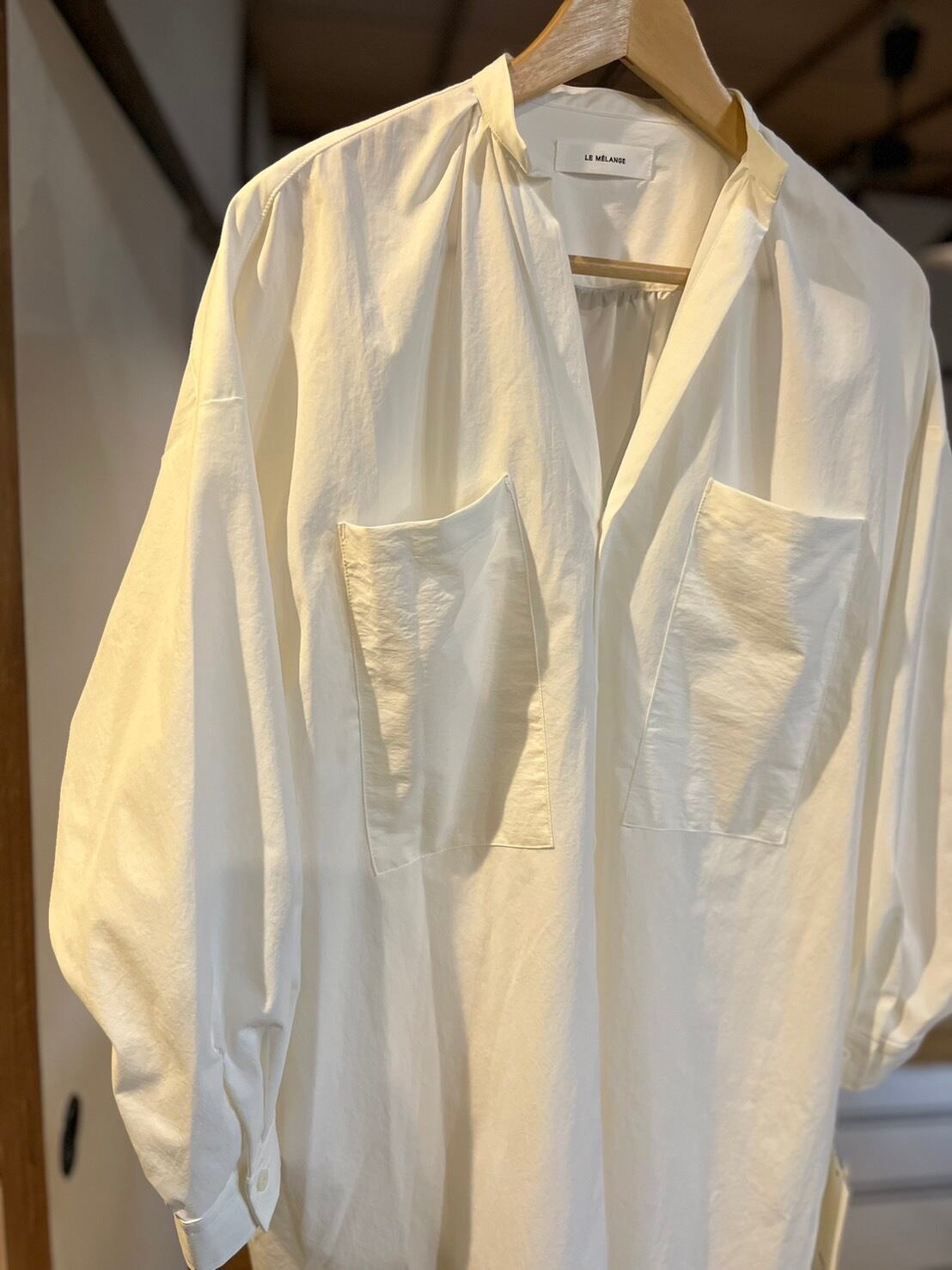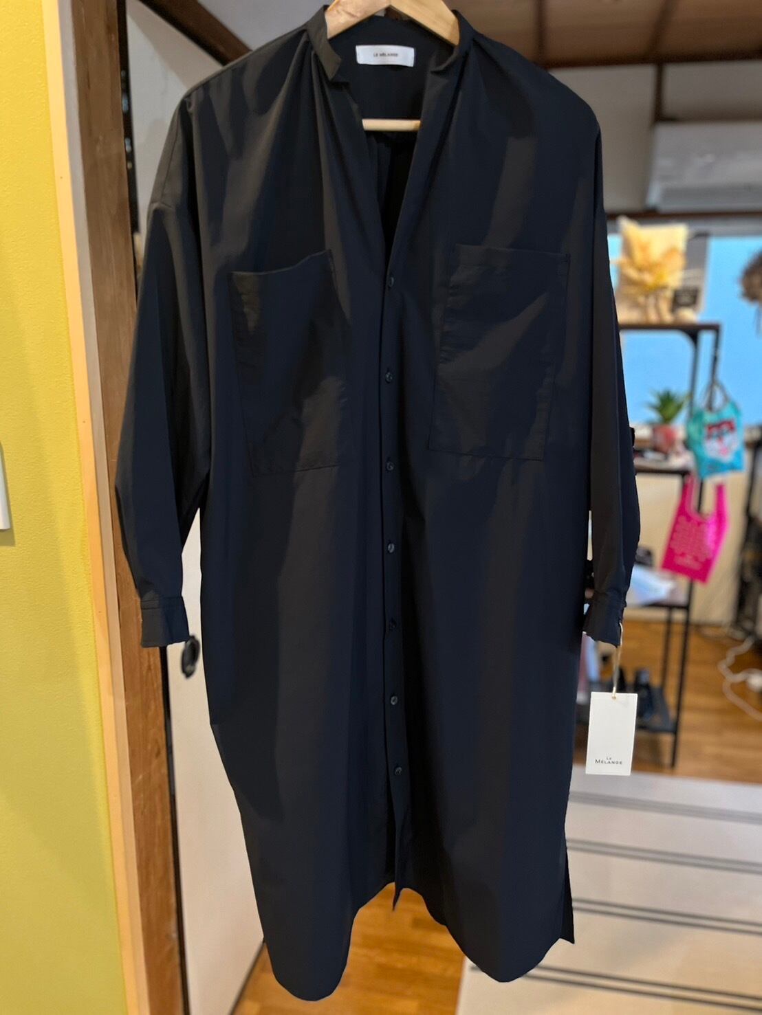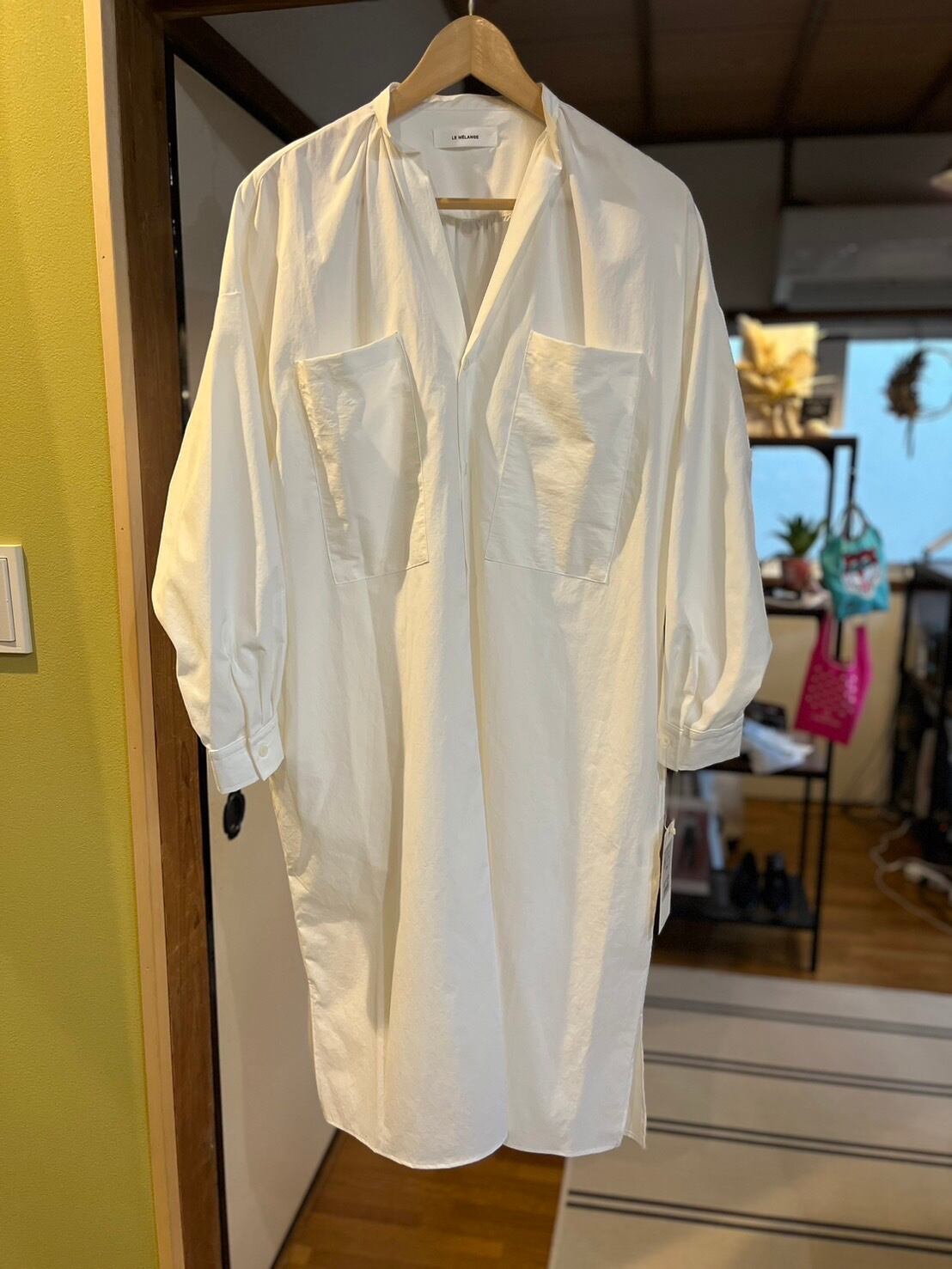 LE MELANGE タイプライター素材シャツワンピ