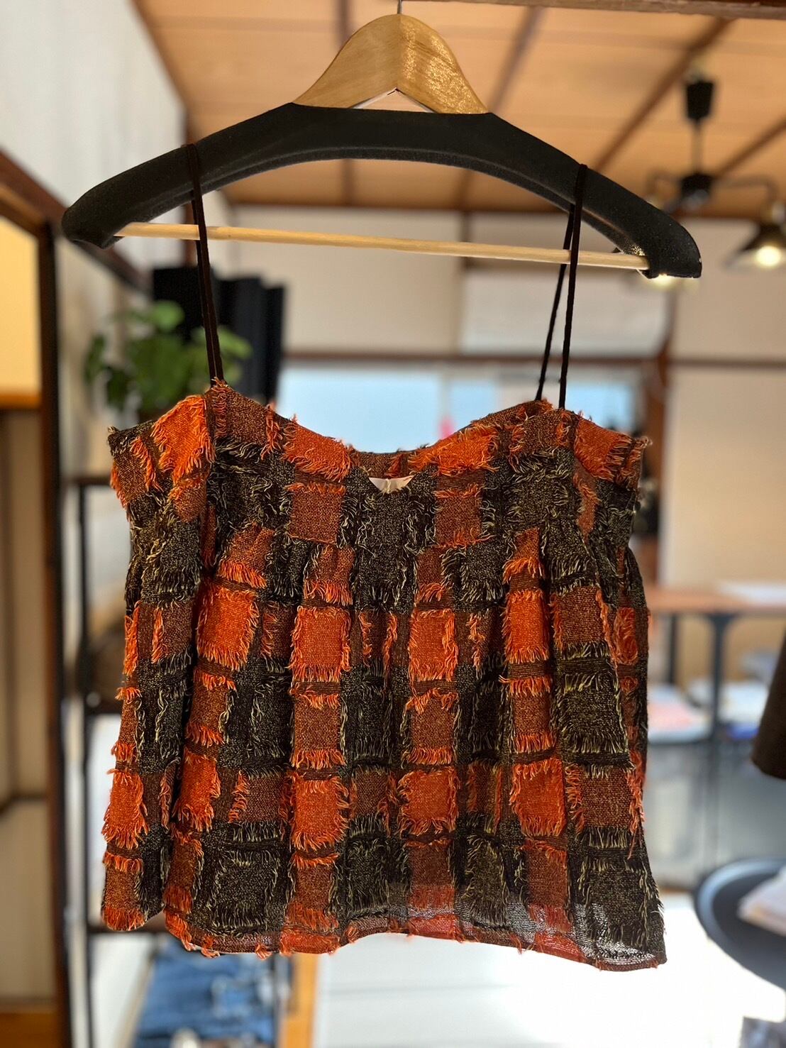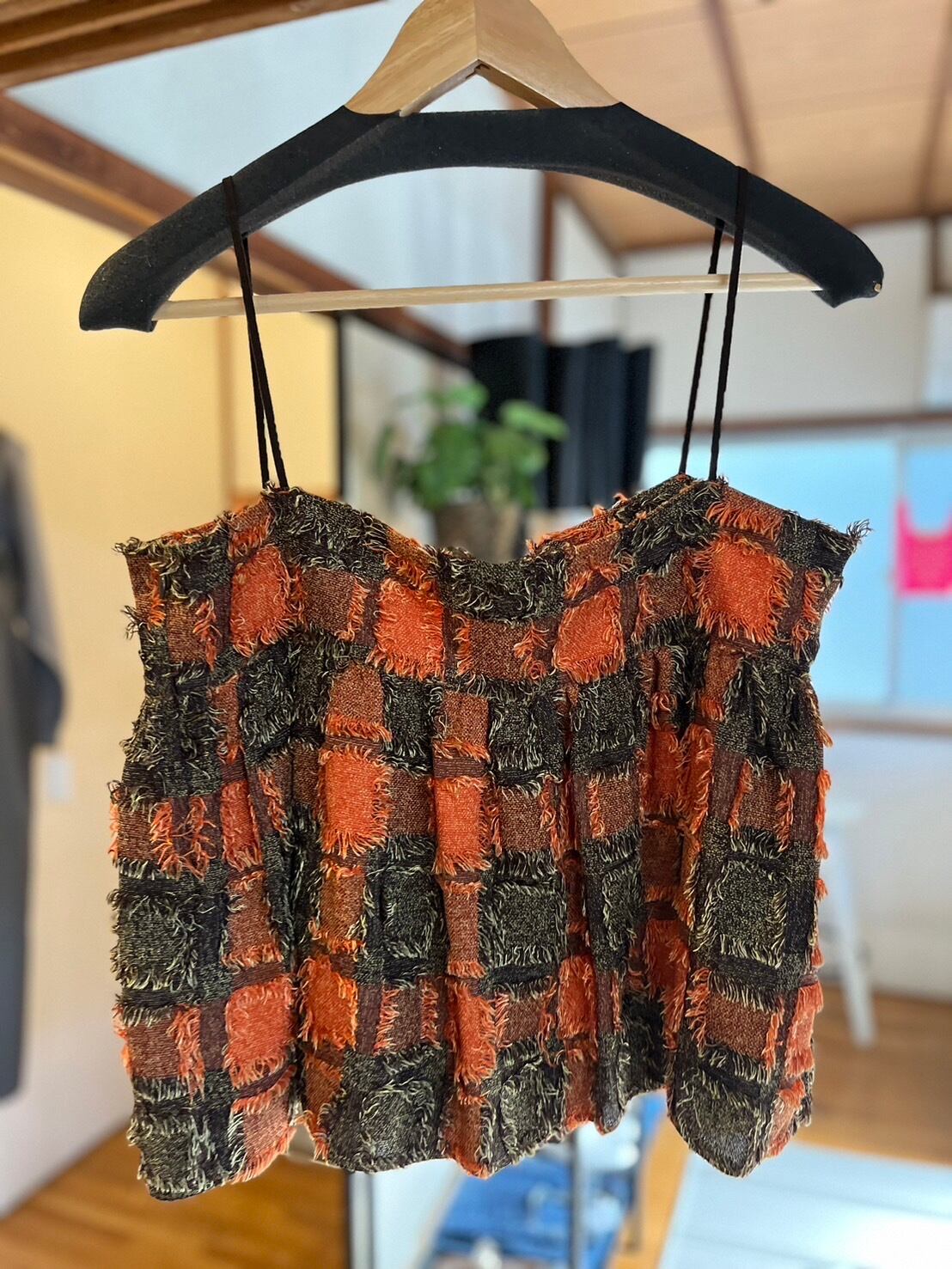 herencia ブロックチェックフリンジビスチェ