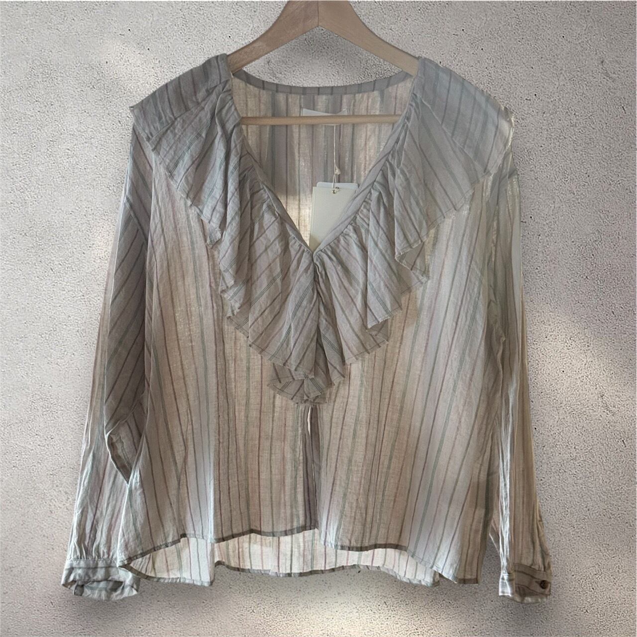 LEMELANGE ラッフルカラーストライプブラウス